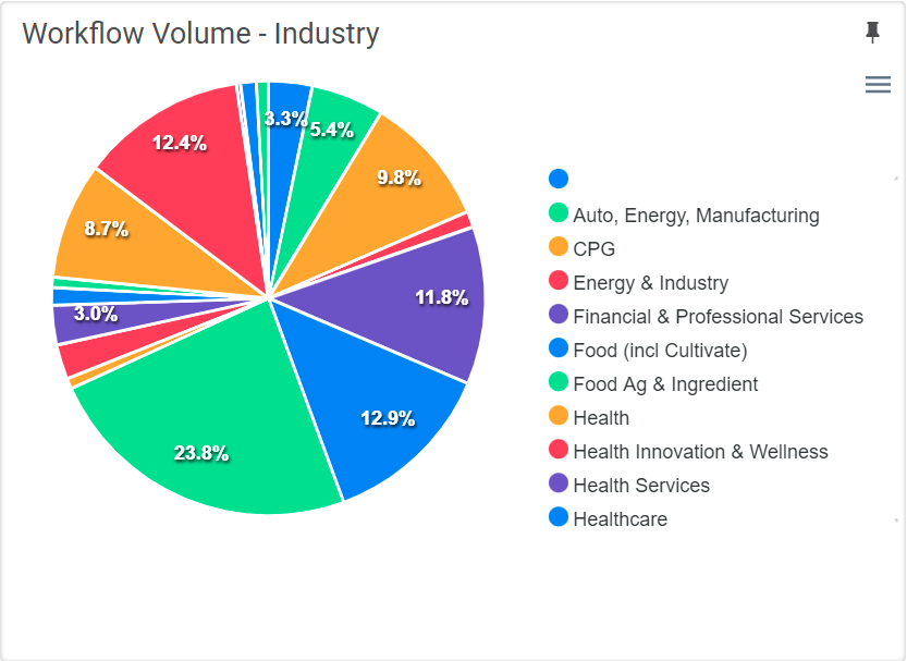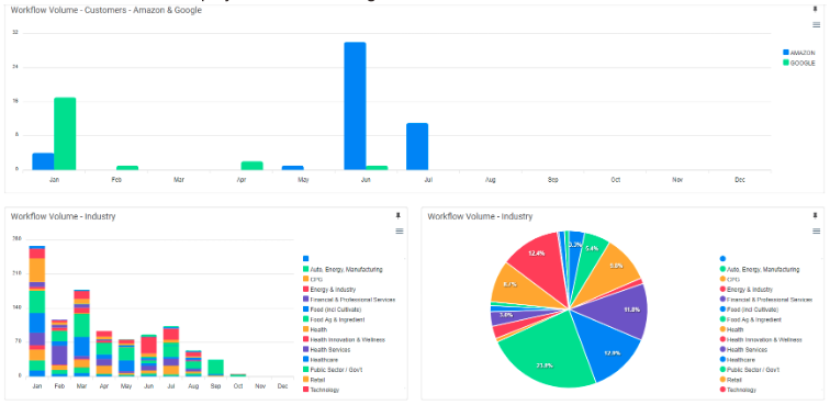 This report shows the volume of workflows (for example, briefs) by type, month, etc.