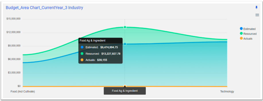 - Project Budget Overview (Estimated v Resourced v Actual)