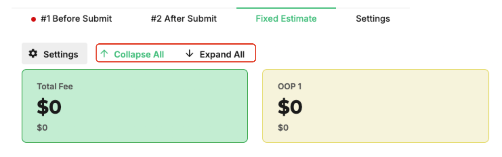 - Collapse all estimate sections to simplify the view