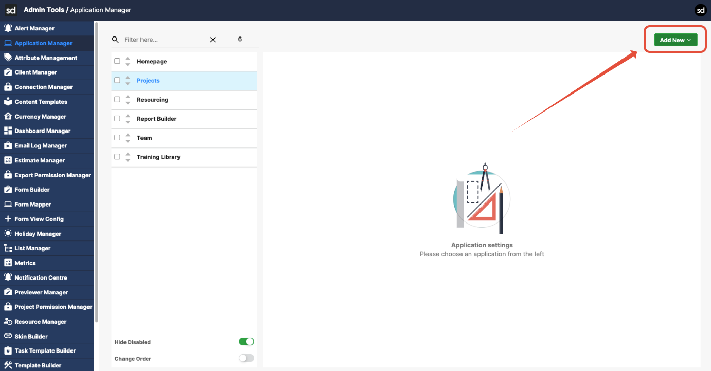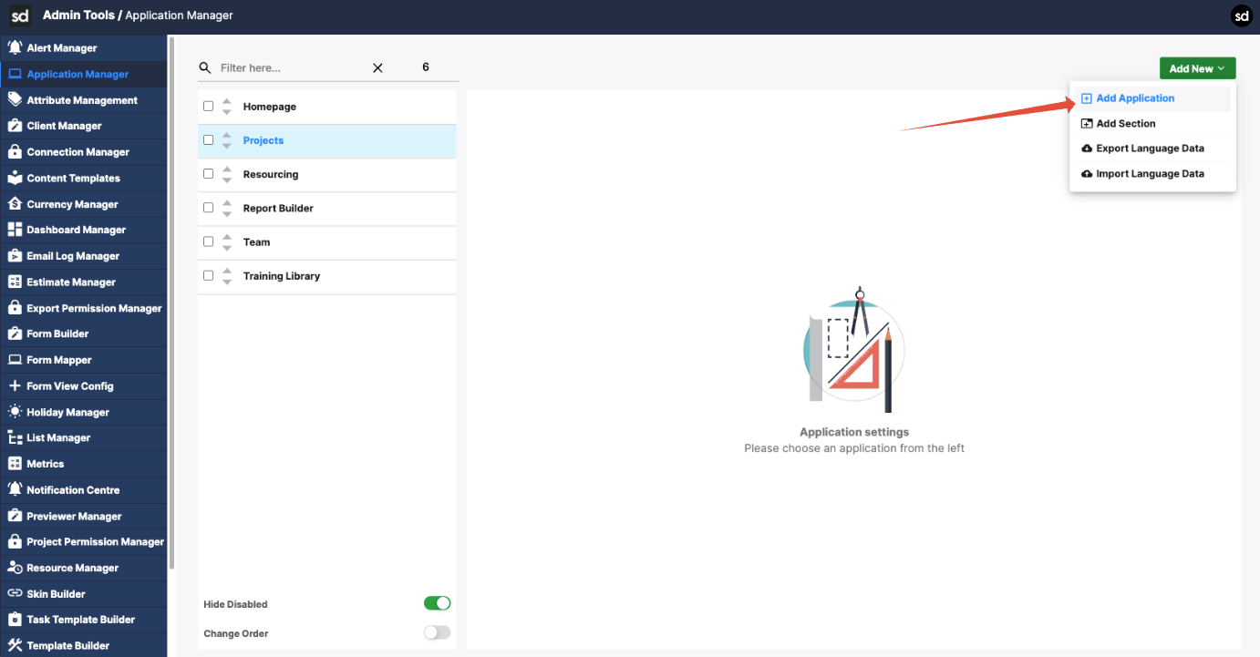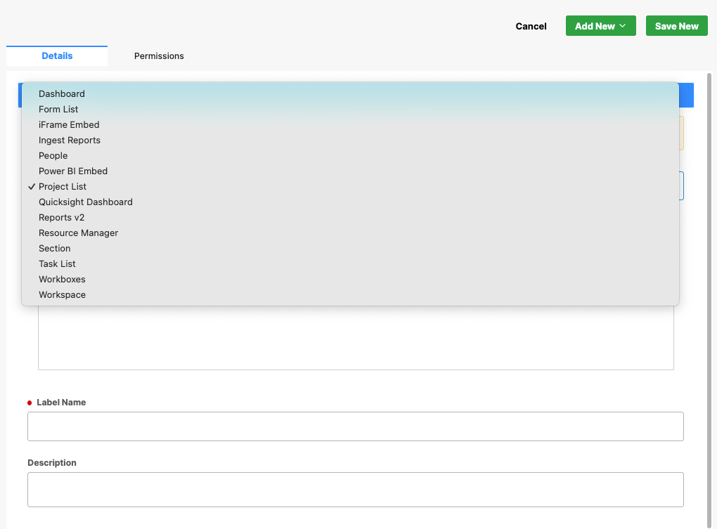 Settings will vary depending on the application type you select. The following is meant as a general overview using the Project List type.