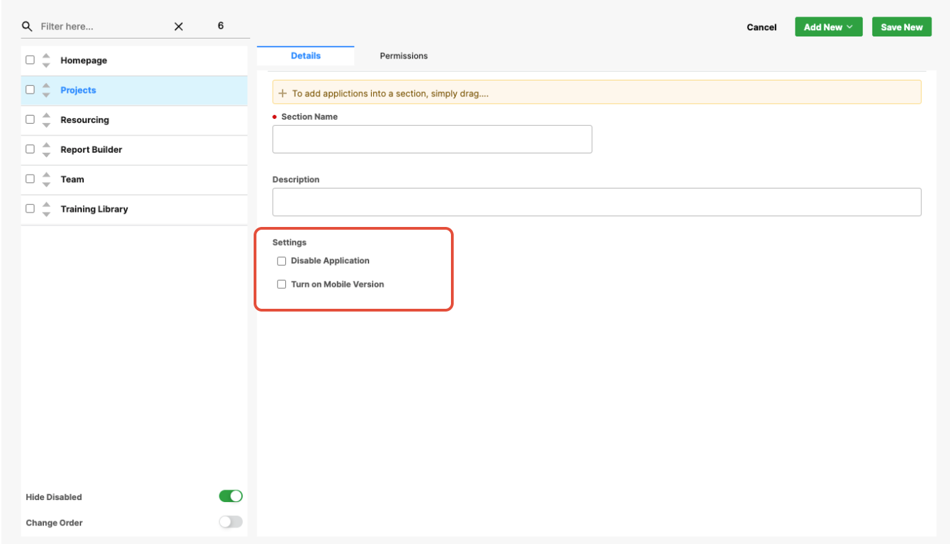 This setting lets you deactivate the application, removing it from the top navigation menu. When disabled, the application is hidden from users but remains in the system and can be re-enabled at any time.Turn on Mobile Version: