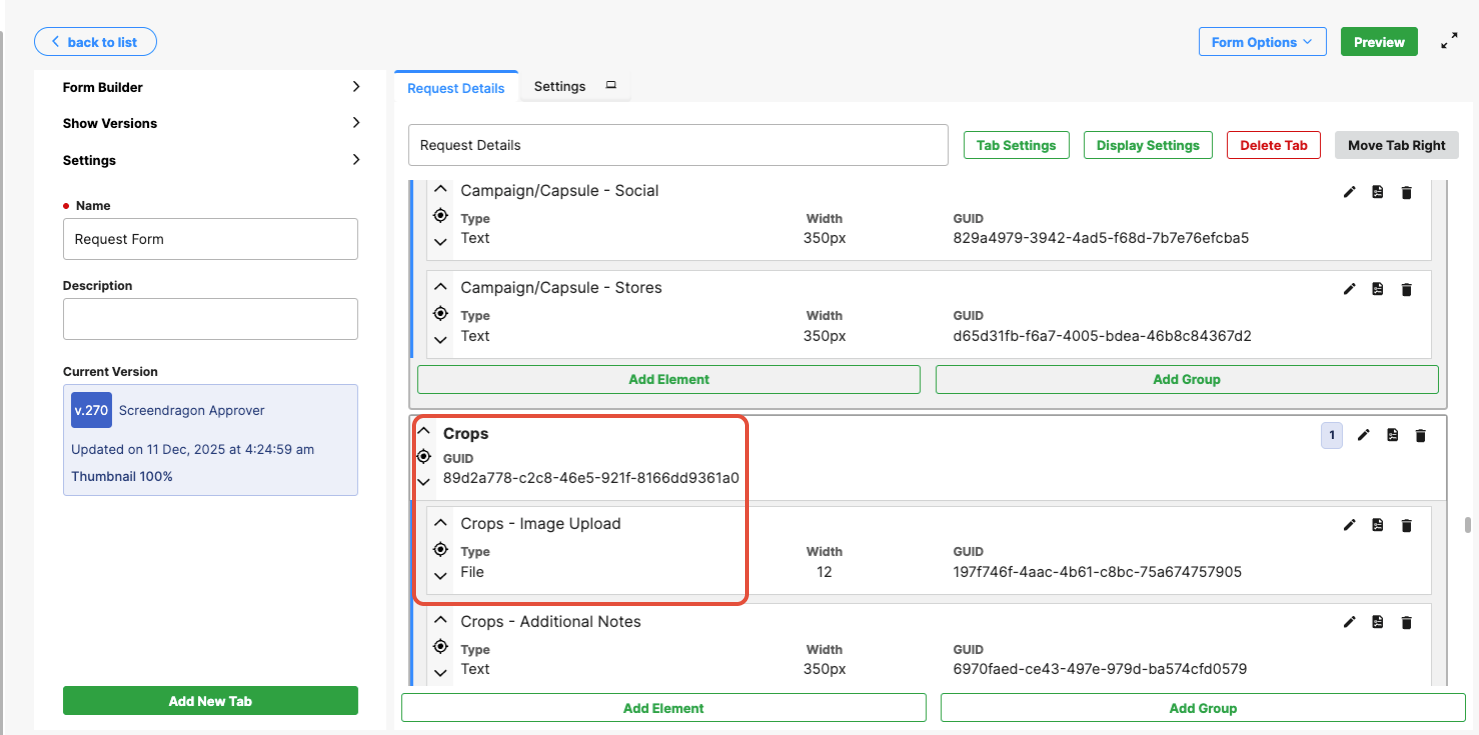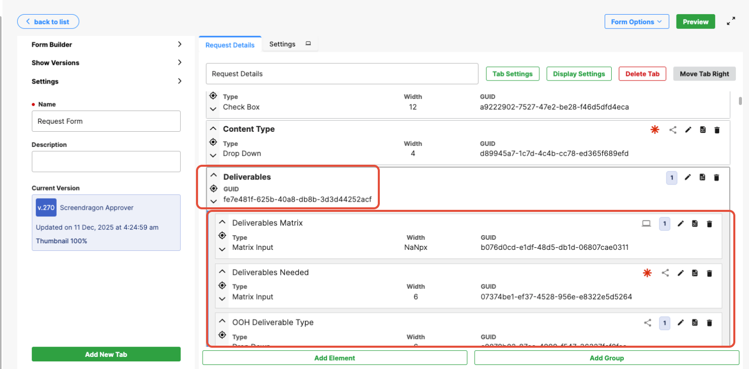 By leveraging groups, administrators can design forms that capture structured data, enforce business rules, and seamlessly integrate with other Screendragon modules such as Projects, Workflows, and Reports.