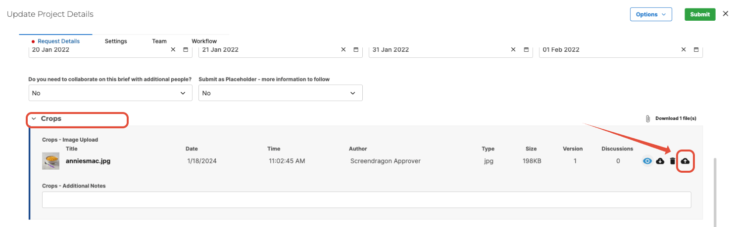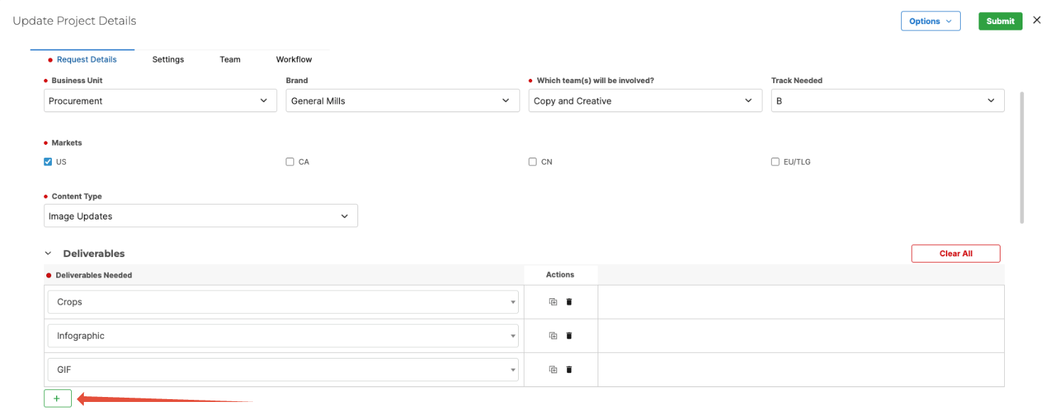 Users can click Add to create additional rows, each of which supports a separate file upload.