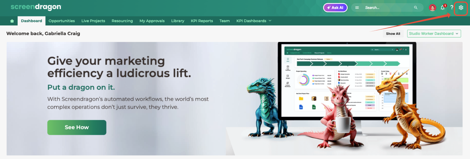 Like all Admin Tools, the Form Builder is accessed via the cog icon in the top-right corner of the main screen. Selecting this icon opens the Admin Tools page in a new browser tab.