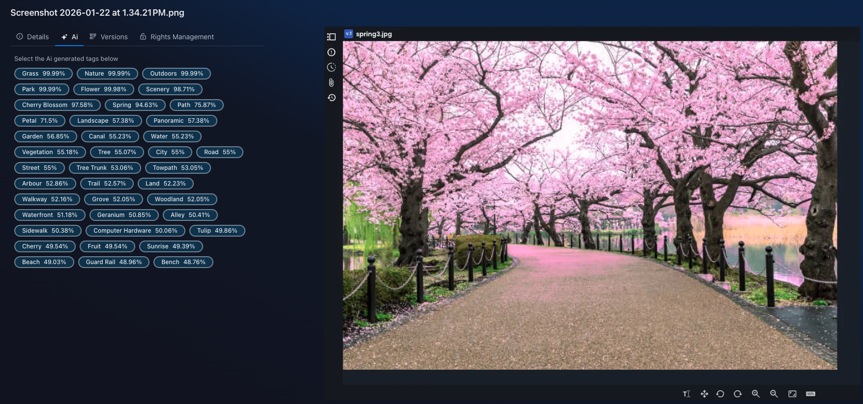 - Locate assets instantly using keywords, concepts, or phrases—powered by AI tagging and OCR recognition.