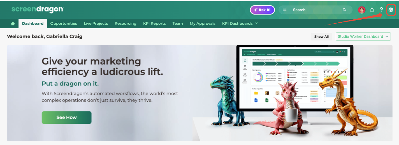 As with all administrative tools, it can be accessed by selecting the cog icon located in the upper-right corner of the main interface.