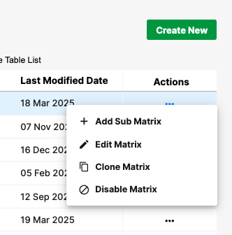 Edit Matrix – Modify the matrix configuration or update relationships.
