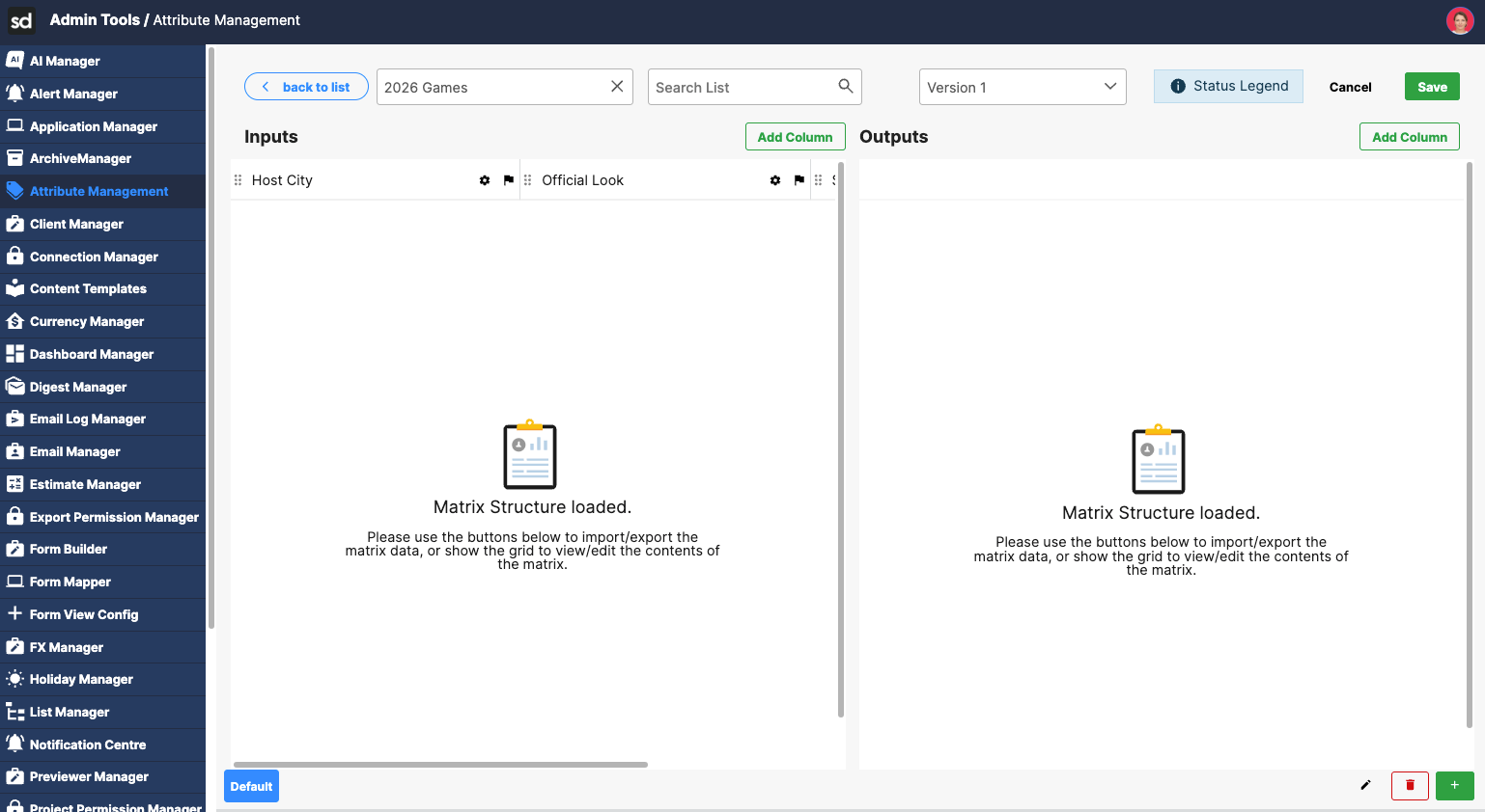 Each cell within the matrix represents a combination of attribute values that can be referenced in forms or reports. These must be configured by adding attributes to the matrix you created.