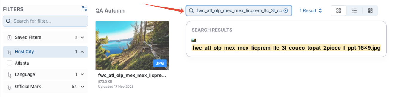 Filtering updates the asset view instantly, and multiple filters can be combined to further narrow results.