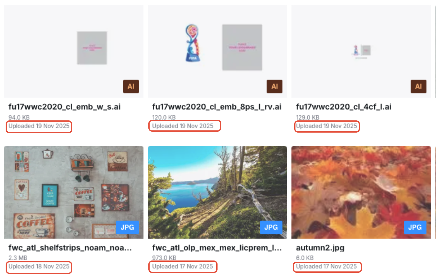 Users can explore assets visually through grid or list layouts. Each asset displays key information to support quick decision-making, including:
