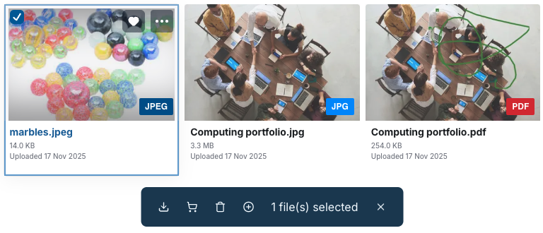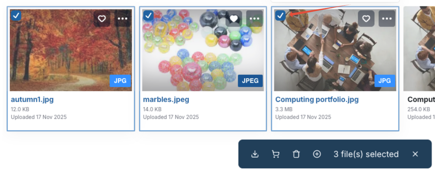 Perform bulk actions (e.g., download, add to cart, add to another collection).