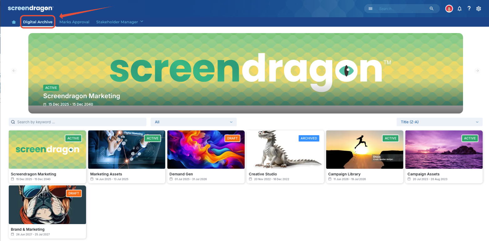 The Global Content Library serves as the primary hub for storing, managing, and interacting with all digital assets within the DAM. It provides a fast, intuitive, and scalable interface that supports diverse user workflows—from simple browsing to advanced retrieval via search and faceted filters.