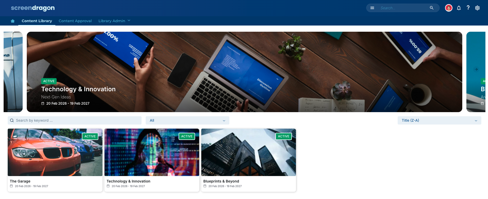 The library consolidates all approved assets into a single, governed, and searchable repository, enabling teams to find, preview, and reuse content efficiently.