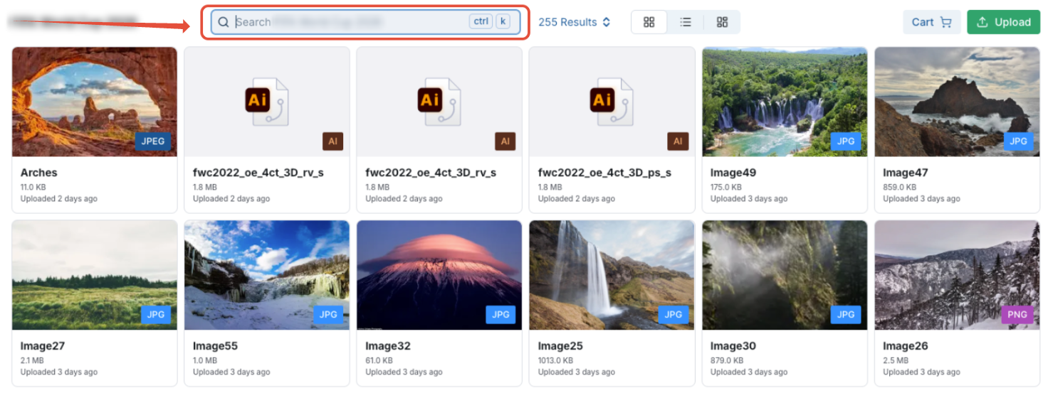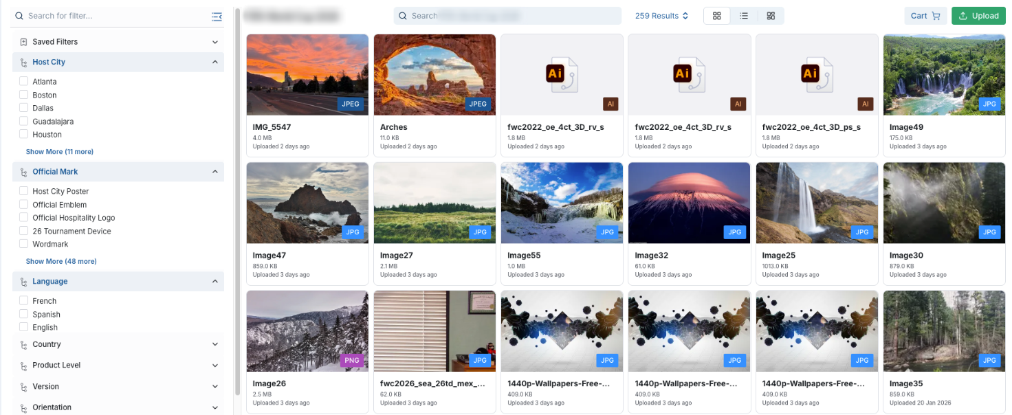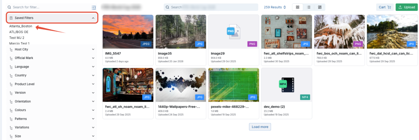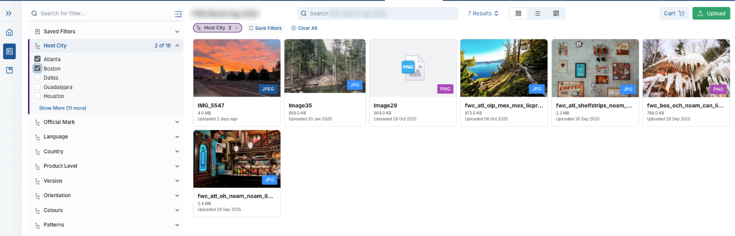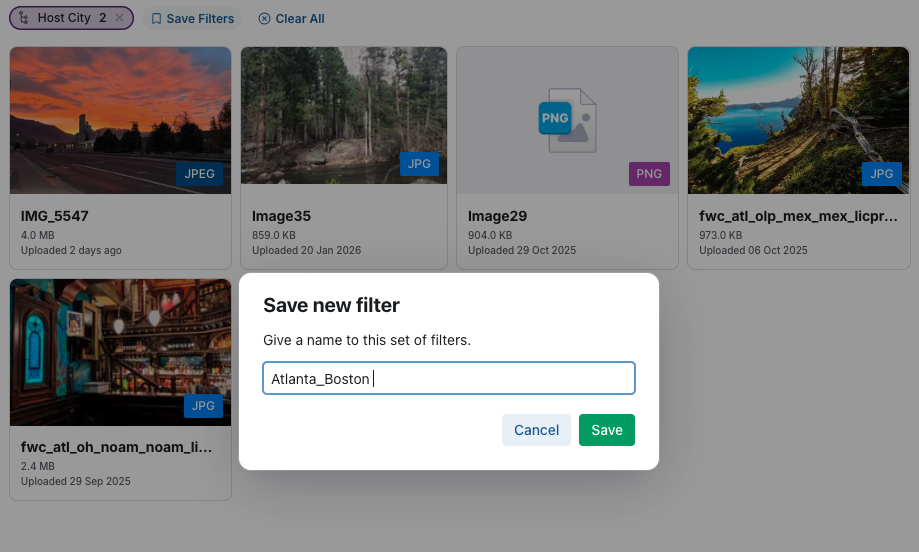 Refine results using metadata filters (e.g., campaign, region, usage rights).