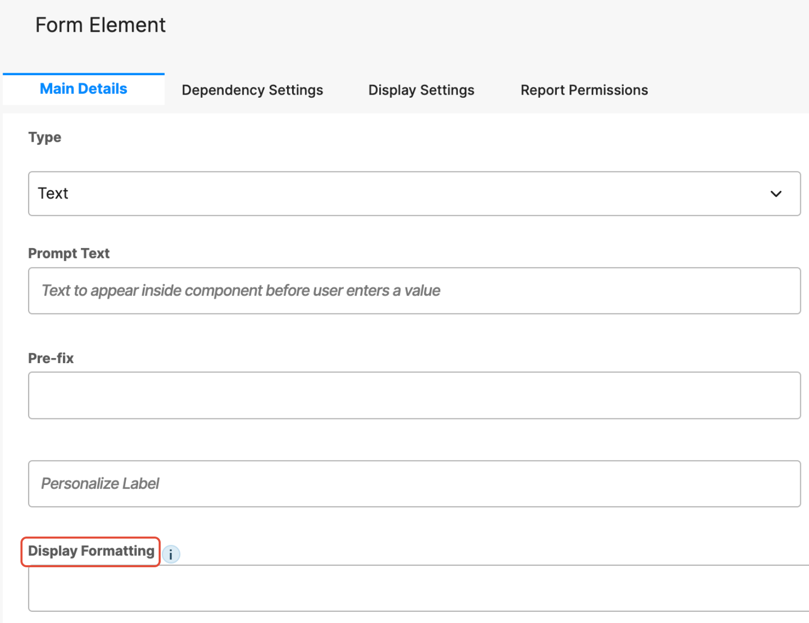 - Display Formatting – Controls how the field value is displayed to users, such as applying specific number, text, or visual formatting without changing the underlying data.