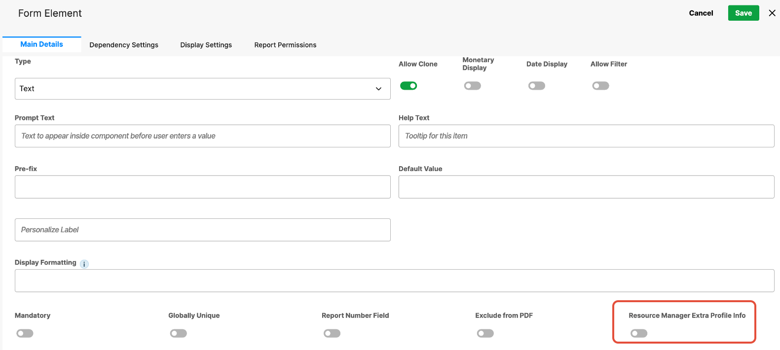 - Resource Manager Extra Profile Info – When enabled, the field is included as additional profile information within the Resource Manager, making it available for resourcing and planning views.