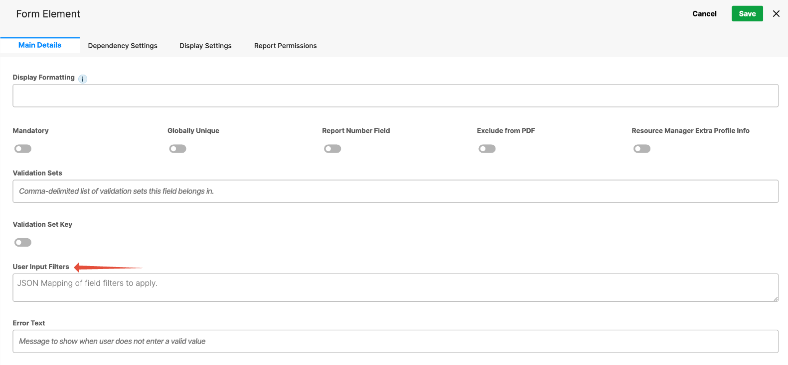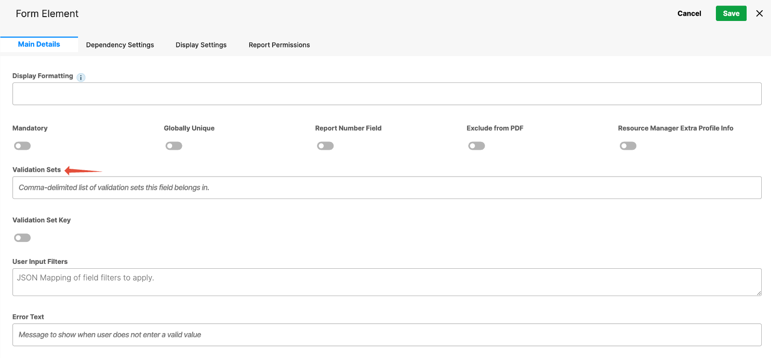 - Validation Sets – Associate the field with a predefined validation set to enforce specific rules on acceptable input values.