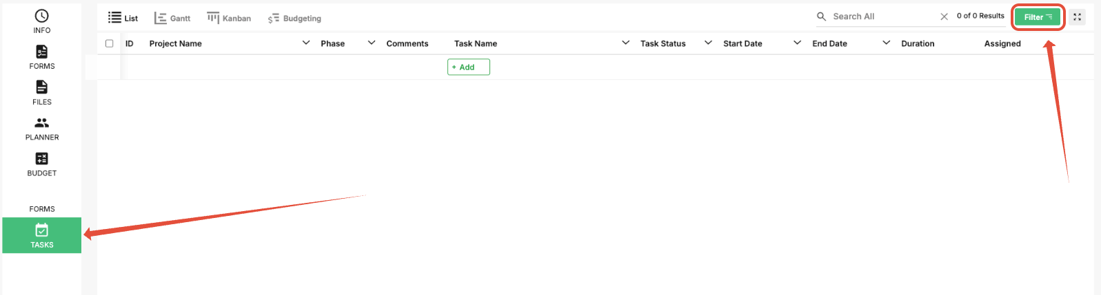 - Click Tasks and then click Filter.