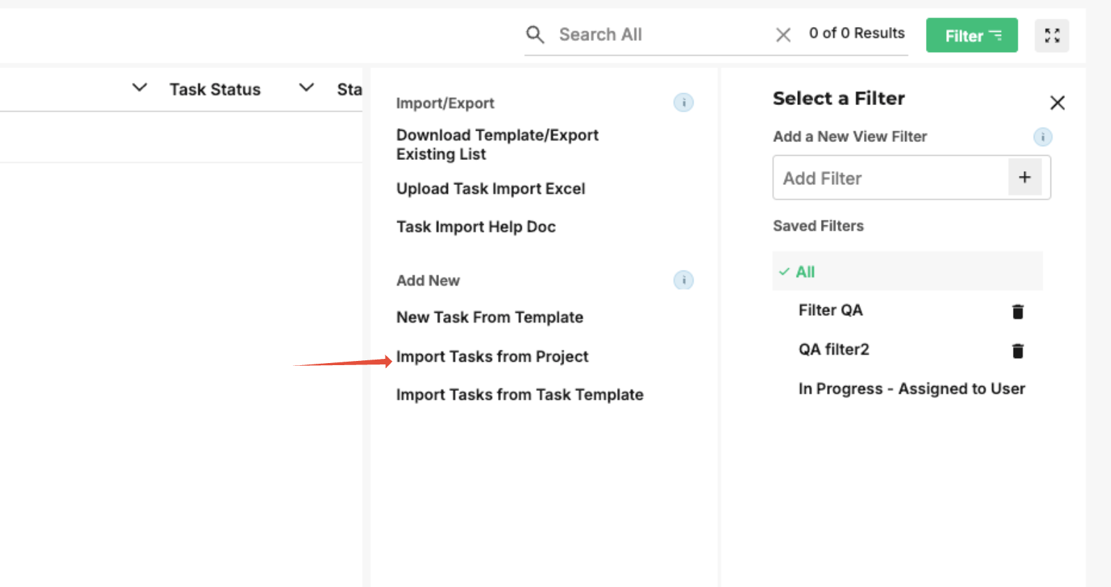 - Select Import Tasks from Project.