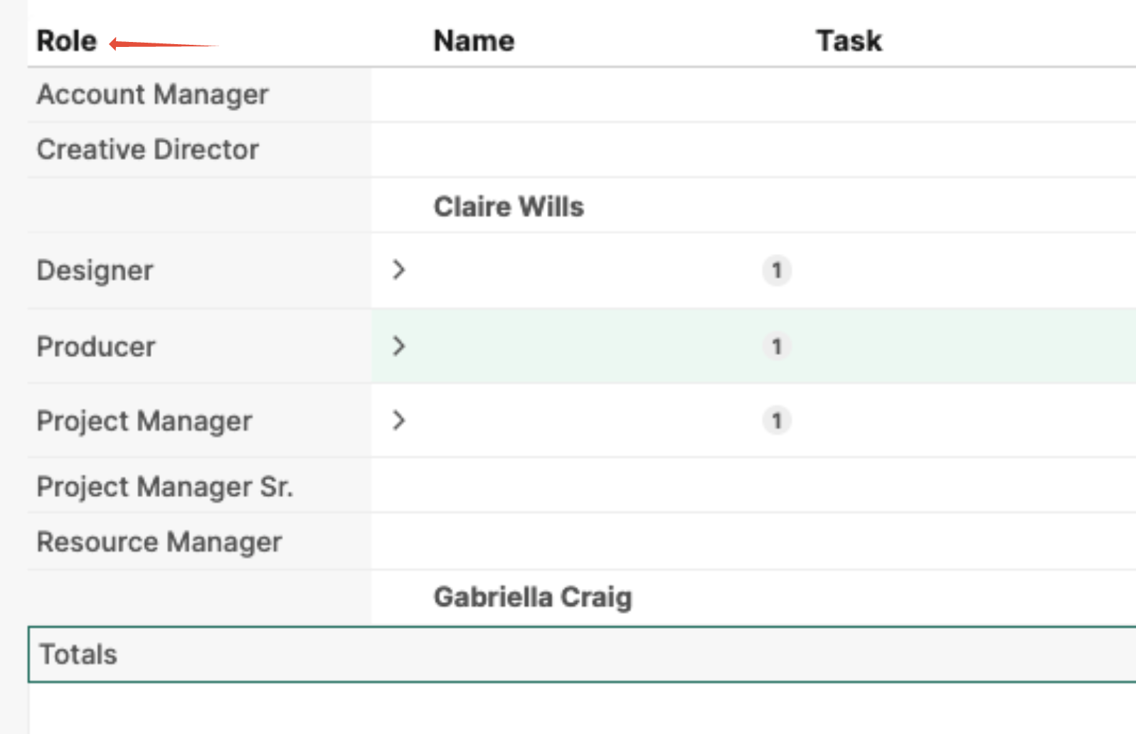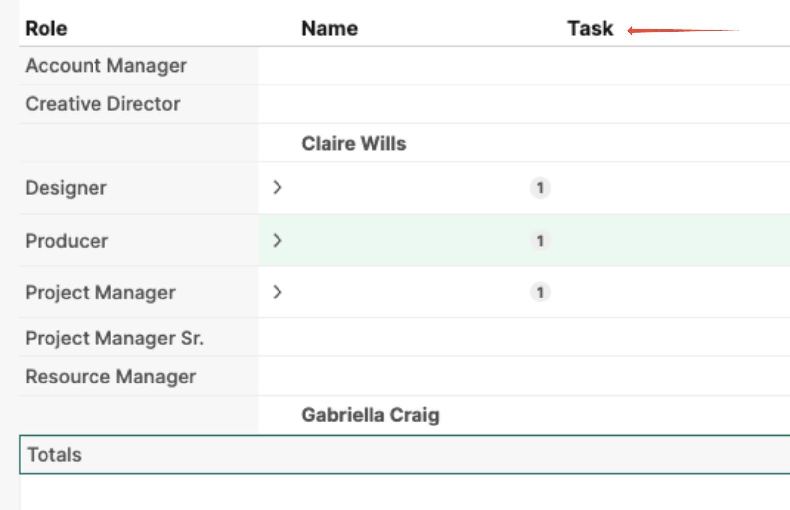 The functional role assigned to the task (for example: Designer, Copywriter, Project Manager).