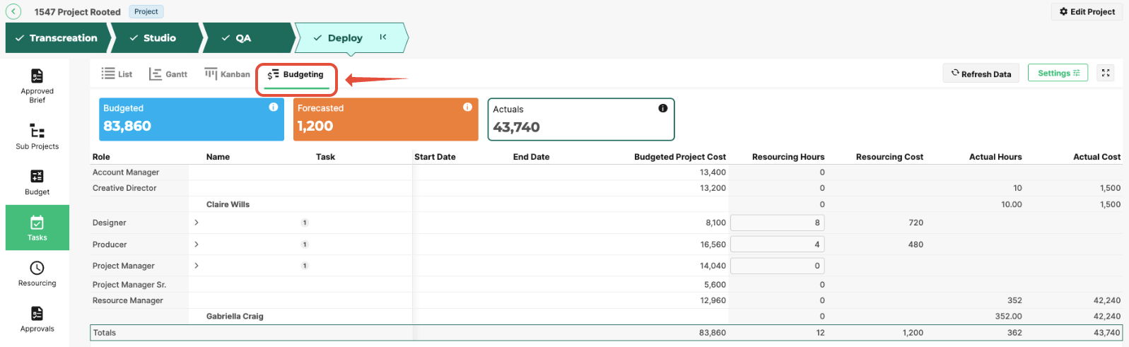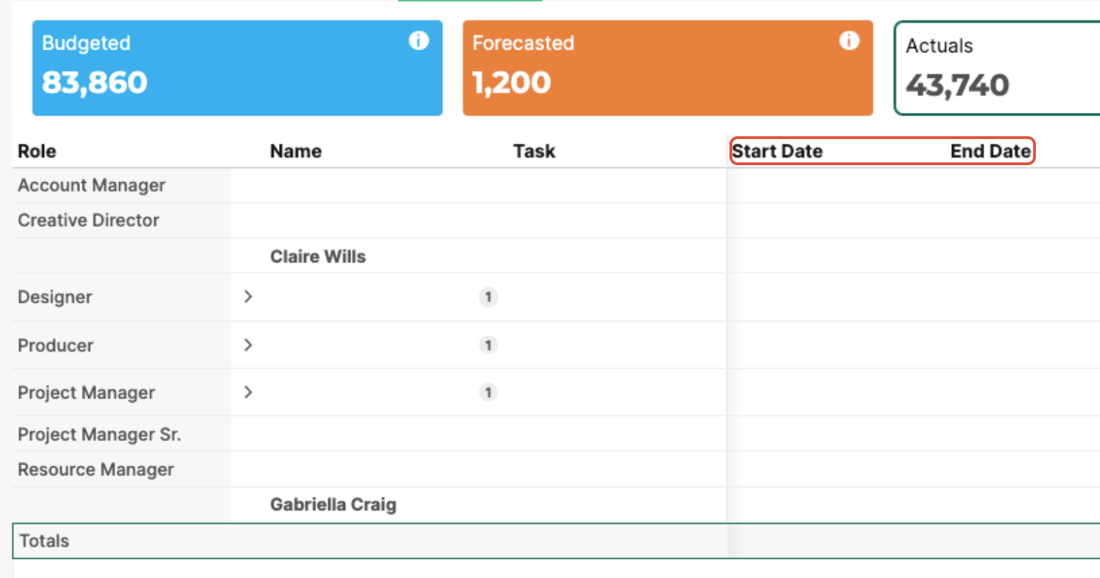 Forecasted Amount helps teams anticipate whether the task will remain within budget.