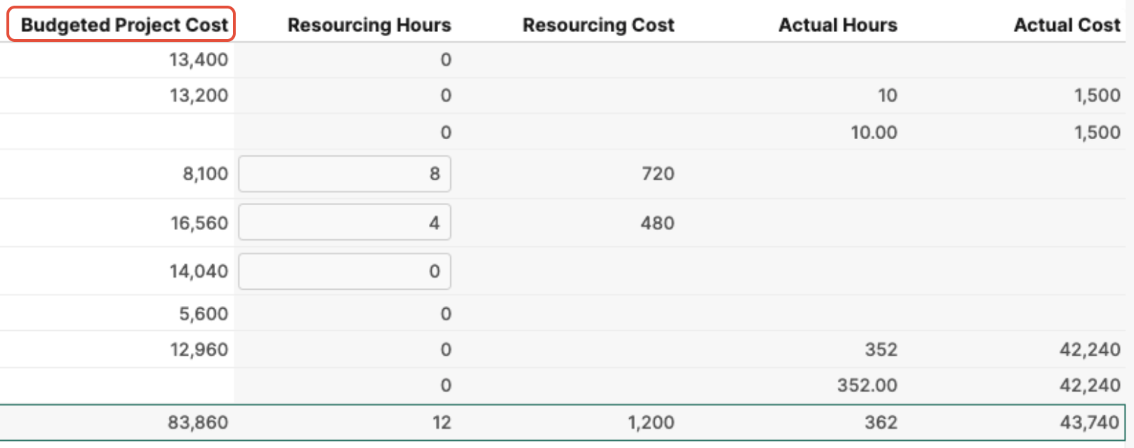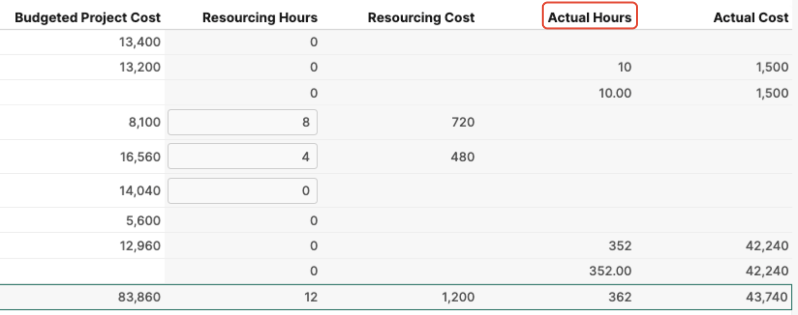 Budgeted Project Hours