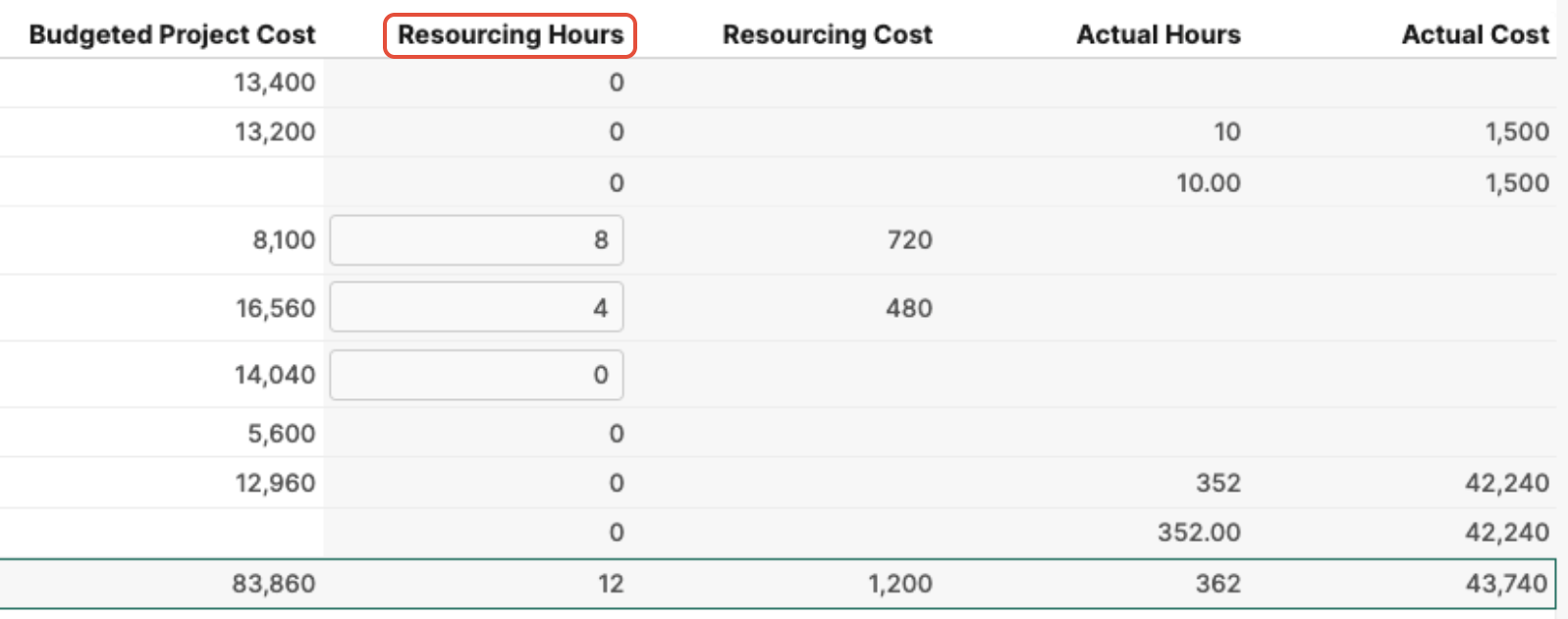 Resourcing Hours