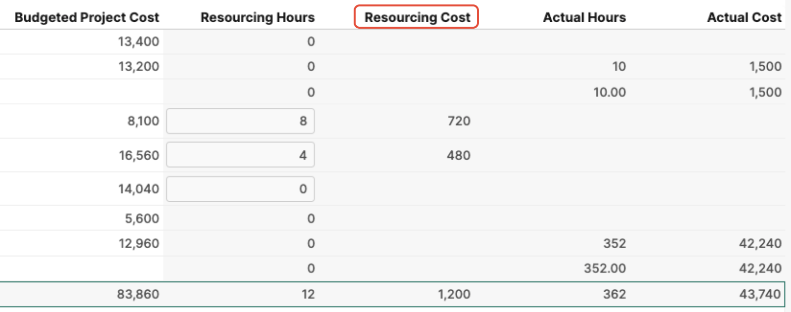Resourcing Cost