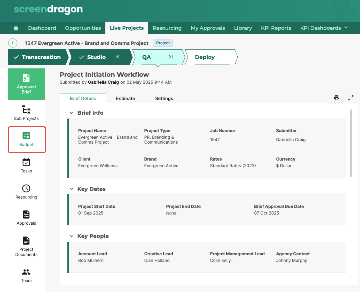 - Within a project, navigate to the Budget module located in the left sidebar.