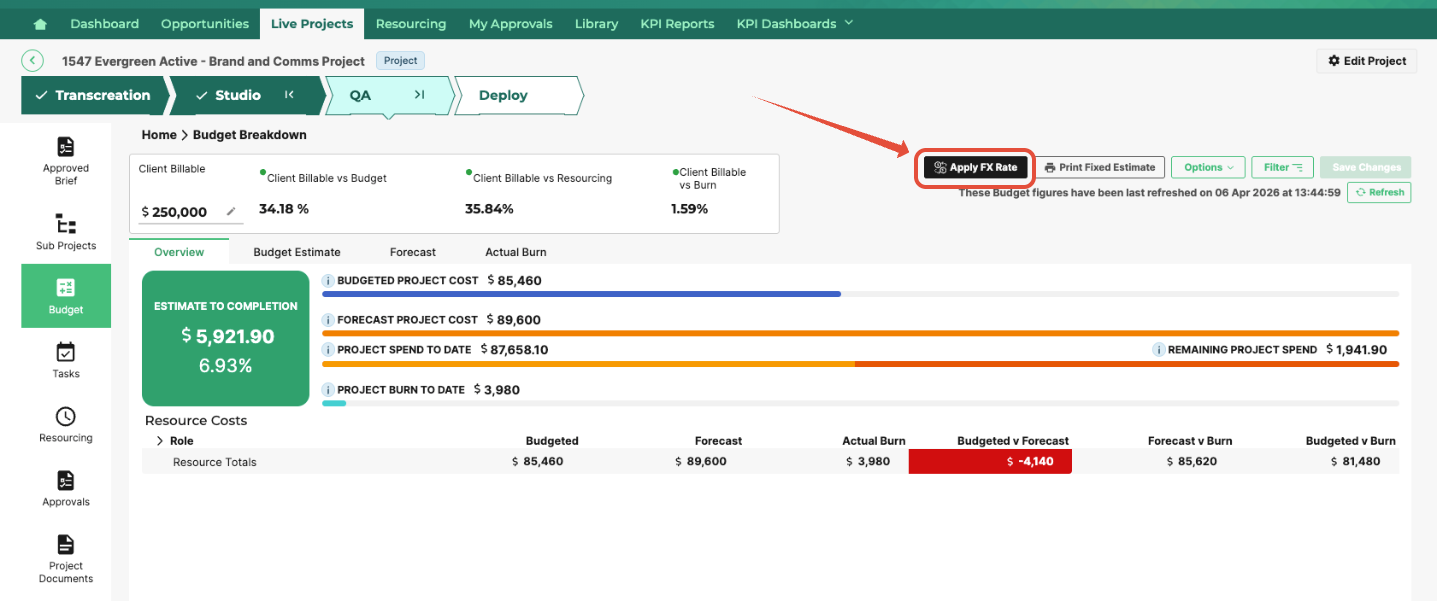 - Then click Apply to convert the budget breakdown to a different currency.